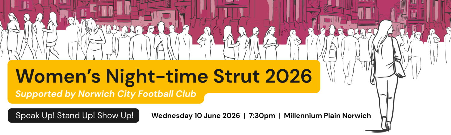 This year, the Night‑time Strut is proudly supported by Norwich City Football Club. Their involvement strengthens our focus on the essential role men play in ending VAWG.